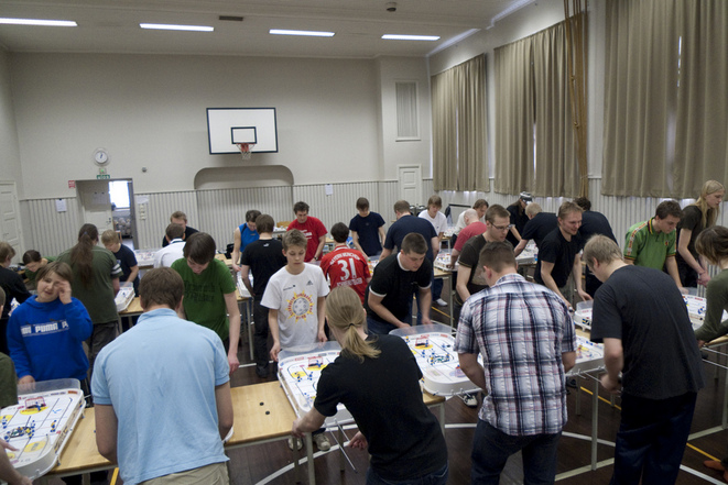 Keski-Espoon koululla järjestettiin viime viikonloppuna pöytäjääkiekon SM-kisat. Kaksi päiväisen tapahtuman aikana nähtiin huikeita jalkakyniä ja upeita haamupelastuksia sekä onnellisia mestareita.Suomenmestaruudet ratkottiin kuudessa sarjassa. Kisat huipentuivat avoimeen sarjaan, johon osallistui 56 muovikaukaloiden virtuoosia mittelemään paremmuudesta.